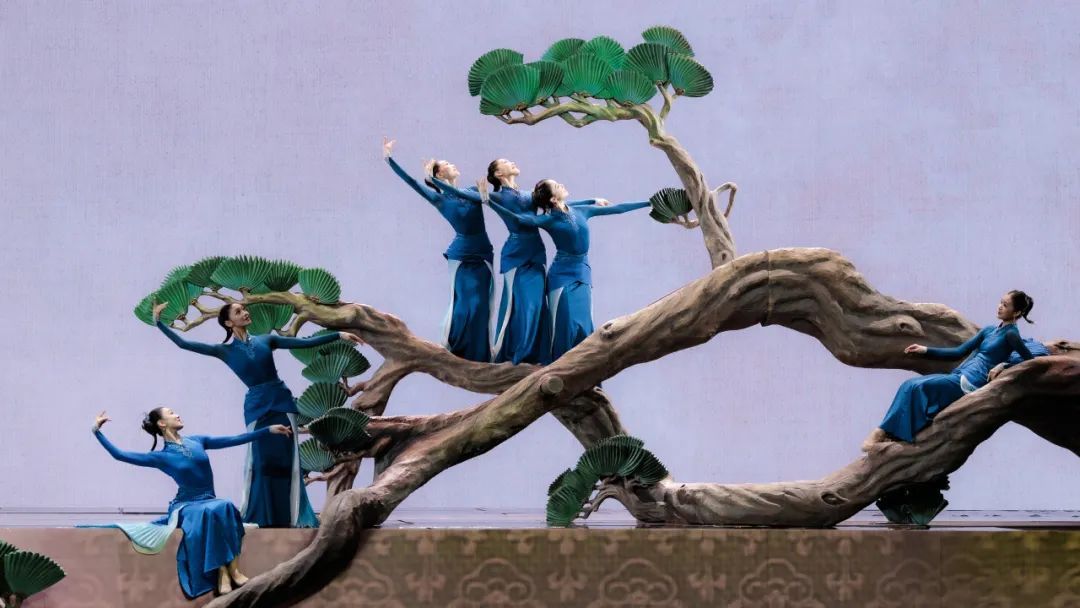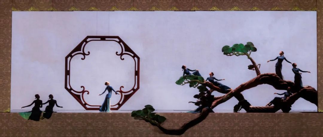 当舞台形成一方宋画尺牍,布景成为留白氤氲的宣纸,舞者化作工笔态状的墨痕,横轴竖幔间,十只报春“喜鹊”从古卷中跃然则出。